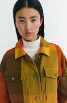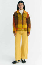 Hippe, karierte Jacke der spanischen Marke Thinking Mu. Der dicke und warme Stoff hat einen Druck aus gelben, roten und braunen Karos. Das Modell hat eine übergroße Passform und 2 große Brusttaschen. Vervollständigen Sie das Set mit der passenden Hose! Der Stoff der beiden Artikel ist vom Muster einer Decke inspiriert.
