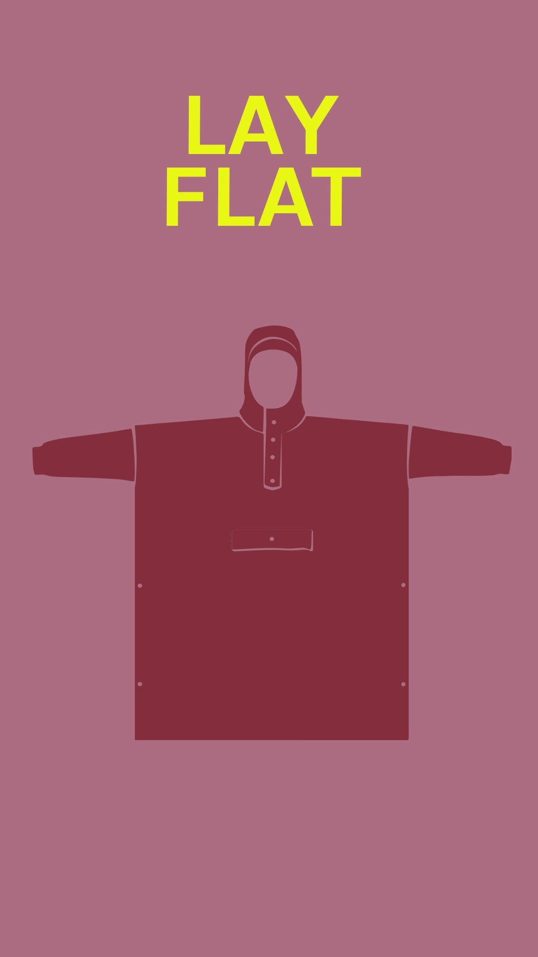 Der Poncho lässt sich leicht zusammenfalten und in der am Poncho angebrachten Tasche verstauen (siehe Video). Sie finden sogar einen QR-Code, den Sie scannen können, um aktuelle Wetterinformationen und lustige Spotify-Playlists zu erhalten.