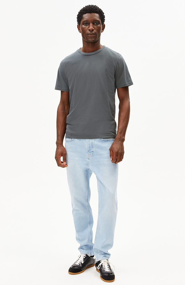 Klassiek grijs/groen t-shirt met een ronde hals en regular fit van ARMEDANGELS. Dit shirt is gemaakt van 100% biologisch katoen en sluit mooi aan. Draag hem boven jeans met evt. een vest er over heen.
