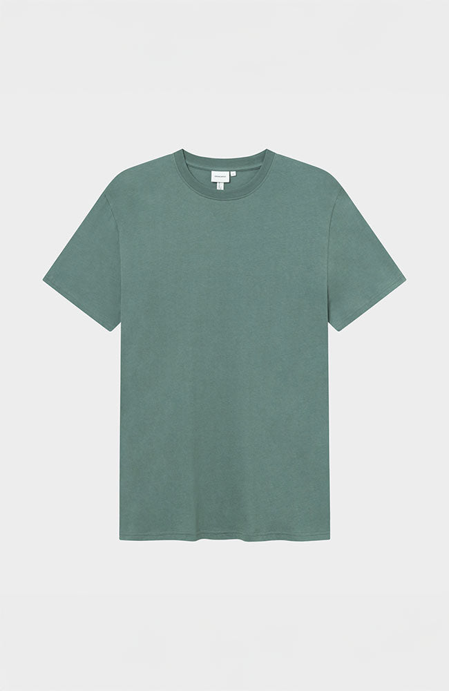 Schönes Basic-Shirt in „Forest Green“ (Grün) der Marke Dedicated. Das Modell hat einen Rundhalsausschnitt, kurze Ärmel, eine normale Passform und einen runden Saum. Das Shirt ist aus weicher und fair gehandelter Bio-Baumwolle gefertigt.