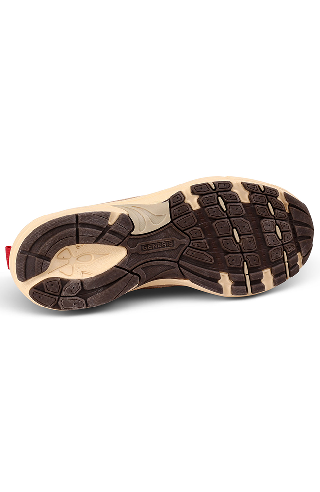 • Materialien: Obermaterial & Logo: Veganes Leder auf Maisabfallbasis und veganes Wildleder aus Zuckerrohr + recyceltem PET. Mesh: Recycelte PET-Flaschen (100%). Einlegesohle: Recycelter PU-Schaum und FSC-zertifizierter Kork. Sohle: Naturkautschuk aus nachhaltigem Anbau (40%) und recycelte PET-Flaschen (10%). Futter: REWAVE™-Futter aus Bambusfasern und recyceltem PET. Nähte und Schnürsenkel: Recycelte PET-Flaschen (100%)