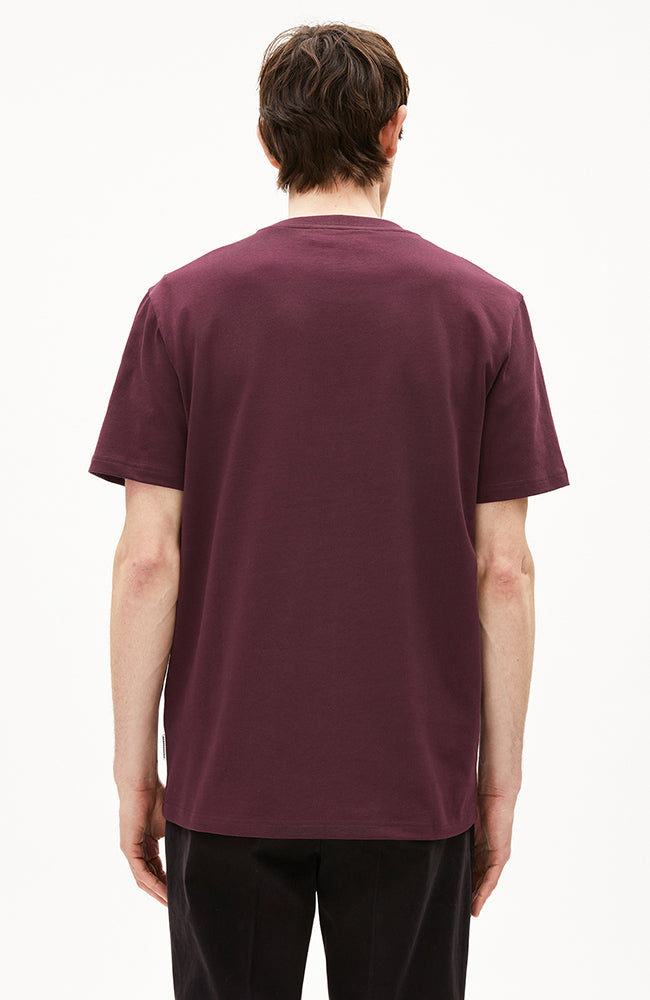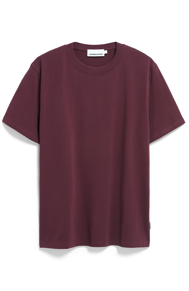Dit Maarkos t-shirt van ARMEDANGELS is een must-have basic in een diepe bordeuax rode donkergroene ('dark cranberry') tint. Het shirt heeft een regular fit met een ronde hals en is gemaakt van wat zwaarder biologisch en gerecycled katoen jersey. Staat leuk op jeans.