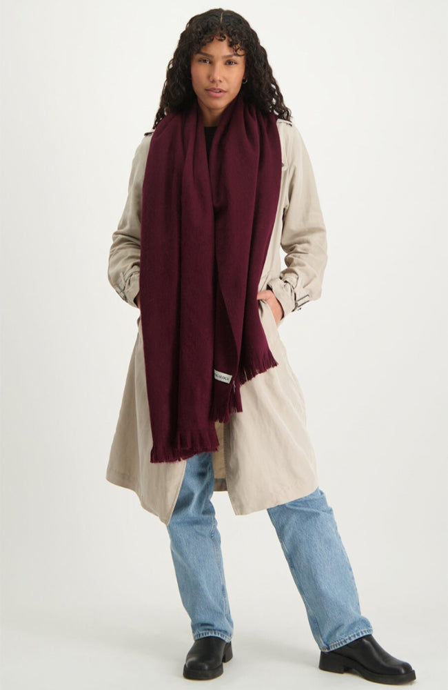 Lekker zachte alpaca wollen geweven sjaal (200x65 cm) van ons nieuwe merk Alpaca Loca. Deze duurzame sjaal is gemaakt van een wol-acryl mix en extreem zacht. De sjaal heeft een mooie wijnrode kleur en kan oneindig gecombineerd worden.